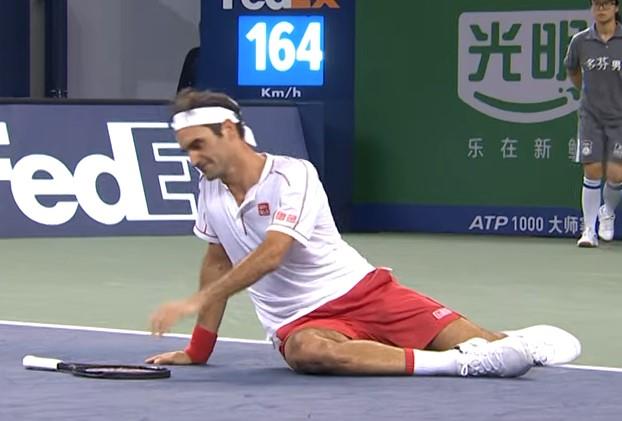 U finišu prvog seta pri rezultat 5:5 i 30:30 desila se neobična situacija. Federer je odservirao, a posle riterna Gofana prosto se srušio na tlo. Švajcarcu je noga proklizala, ali srećom nije zadobio povredu.