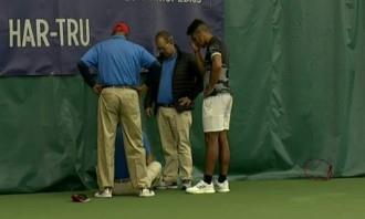 Moh je gubio 6:3, 4:1 od Barbadosa Darijana Kinga, a nakon izlaska na mrežu Moh je pogrešio što ga je razbesnelo, te je reket iz sve snage bacio u stranu gde se nalazio nesrećni sudija.