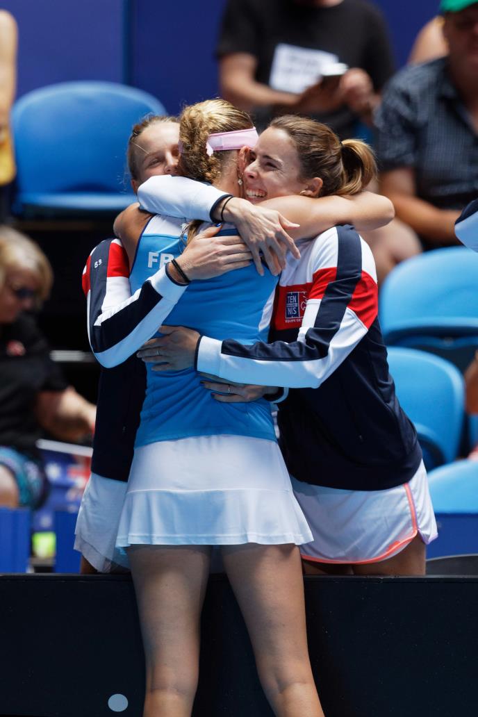 Odlučujući poen Francuskinjama donele su u dublu Kristina Mladenović i Karolin Garsija, koje su u pobedile australijsku kombinaciju Ešli Barti-Samanta Stosur 6:4, 6:3.