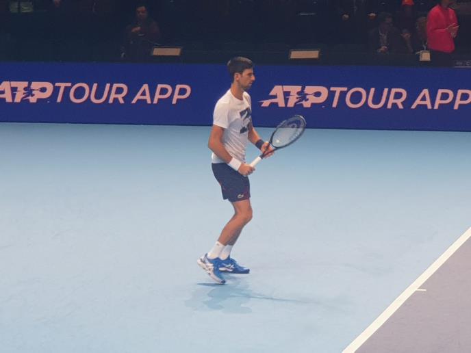 Trening Novaka Đokovića pred večerašnji meč bio je daleko ozbiljniji od treninga njegovog rivala Rodžera Federera, prenosi Kurirov izveštač iz "O2 arene" u Londonu.