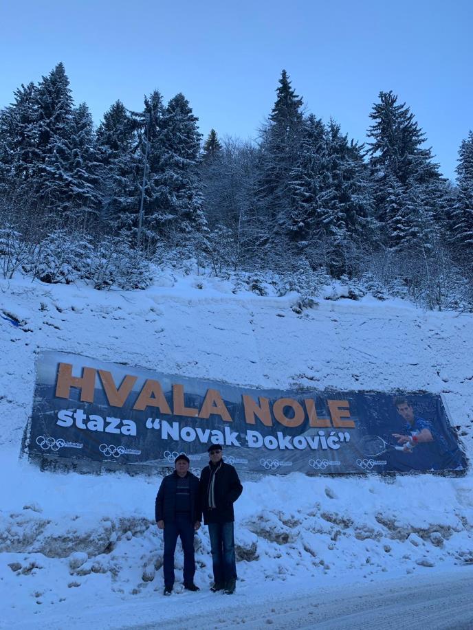 Turisti se sa zadovoljstvom slikaju ispred natpisa na startu i cilju, a podršku Đokoviću sa vrha olimpijske planine poslala je i delegacija Srpske federacije kompanijskog sporta na čelu sa potpredsednikom Budimirom Vučinićem, koji je inače bio veliki prijatelj sa Novakovim pokojnim dedom Vladimirom.