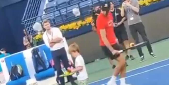NOVAK SA SINOM TRENIRAO U DUBAIJU: Mali Stefan sa reketom u ruci nasmejao sve prisutne! (VIDEO)
