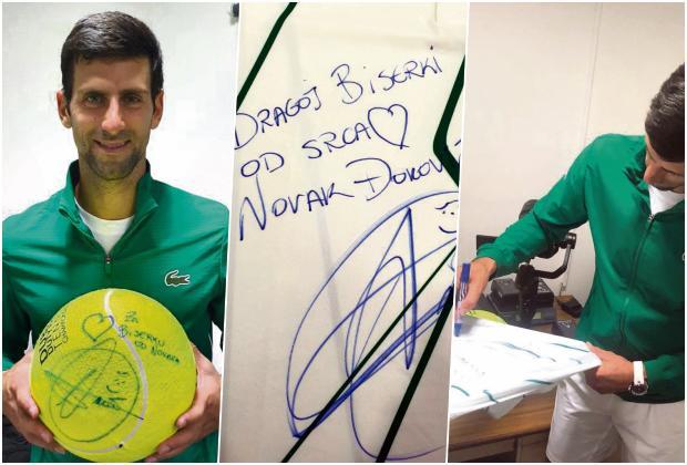Bravo Najbolji teniser sveta potpisao veliku tenisku loptu i svoju majicu, koje će biti uručene Biserki Petrović