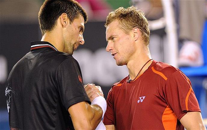Najbolji srpski teniser Novak Đoković savladao je posle velikog preokreta Australijanaca Lejtona Hjuita na Centralnom stadionu terena na Vimbldonu rezultatom 2:1, po setovima 4:6, 7:5, 6:1 i tako izborio plasman u četvrtfinale Olimpijskih igara u Londonu. Tamo ga čeka Žo-Vilfred Conga (Francuska) koji je savladao Felisijana Lopeza (Španija).
