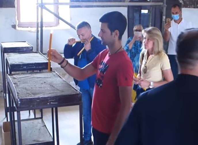 Đokovići su u Hramu zapalili cveće, a Novak je neposredno ranije mogao da vidi i prostor iza oltara, trpezariju za obedovanje i gotovo sve prateće elemente van glavne kupole.