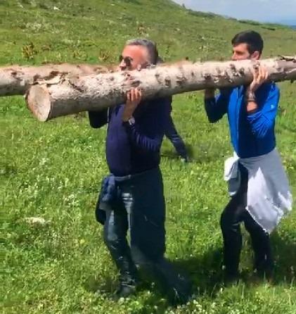 Nakon uzbudljivog leta helikopterom i razgledanja prelepe planine sa visine, Nole je iskoristio boravak na Jahorini i za dodatni trening snage.
