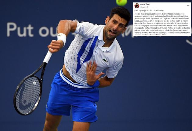 Đoković je arhetip savršenog Srbina, spoj istinske duhovnosti, predanog fizičkog rada, humanitarnog aktivizma i uspeha u svom poslu. Srbija neće biti velika onda kad njene karte budu iscrtavali kafanski nacionalisti koji liče na četnike iz Bulajićevih filmova. Niti dok se narod bude zaluđivao zadrugama i sultanovim ženama. Srbija će biti velika onda kad bude kao Nole. Kada se vrati svojoj pravoj istoriji i istinskoj svetosavnoj duhovnosti. Tada će srpski uspesi zaboleti zapad kao Novakova loptica", stoji u statusu istoričara Gorana Šarića.