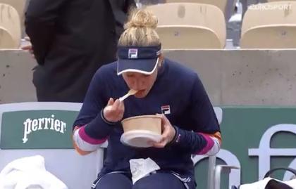 Nemačka teniserka Laura Zigmund šokirala je tenisku javnost, pošto je na meču osmine finala Rolan Garosa izvadila ručak i počela da jede dok su njenoj rivalki ukazivali lekarsku pomoć.
