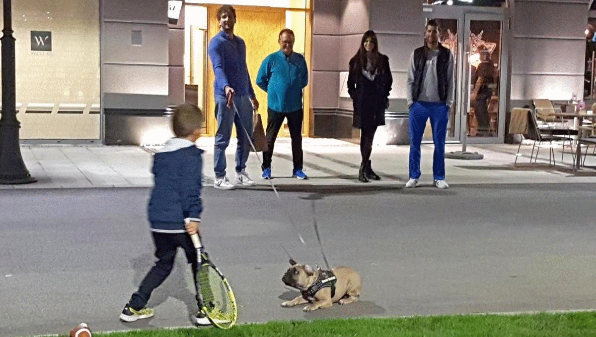 Paparaco Kurira je uspeo da uslika najboljeg tenisera planete kako ispred zgrade u kojoj boravi kada je u Beogradu opušteno ćaska sa porodicom i prijateljima.