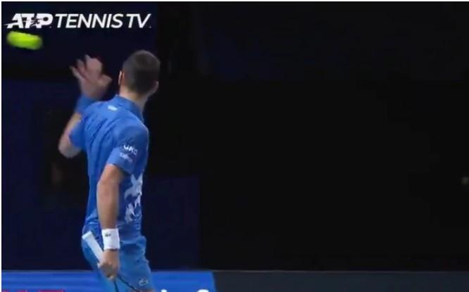 Tokom meča, desila se zanimljiva situacija u kojoj je refleks spasio Novaka da mu loptica ne završi na licu nakon silovtiog servisa argentinskog tenisera.