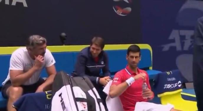 Naime, posle poraza Dušana Lajovića od Miloša Raonića, Đoković je morao da pobedi Šapovalova, što je i uradio, ali se pri rezultatu 7:5, 4:3 razbesneo. On je tom prilikom posle gubitka gema besno udario kutiju na kojoj stoje peškiri.
