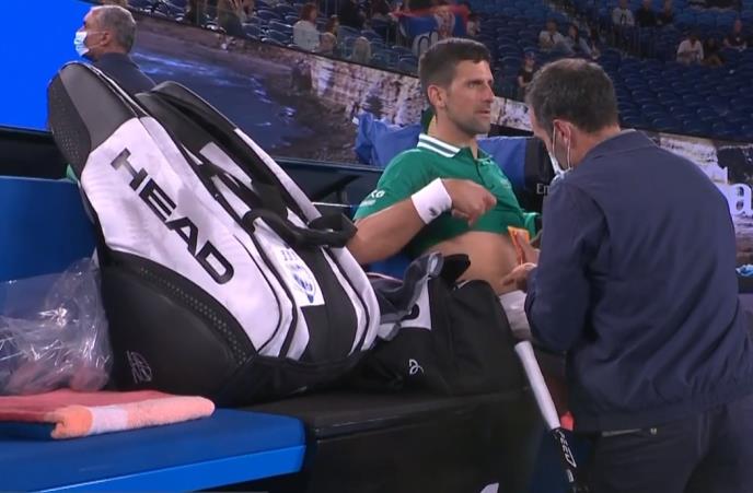 Đoković se povredio početkom trećeg seta, pri rezultatu 1:1, kada se uhvatio za trbušni mišić.