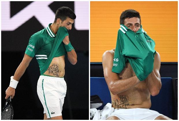 NAVIJAČI SU BILI POTPUNO ZBUNJENI KADA JE NOVAK PODIGAO MAJICU: Šta mu je to na stomaku? Kakvi su to HIJEROGLIFI?! (FOTO)