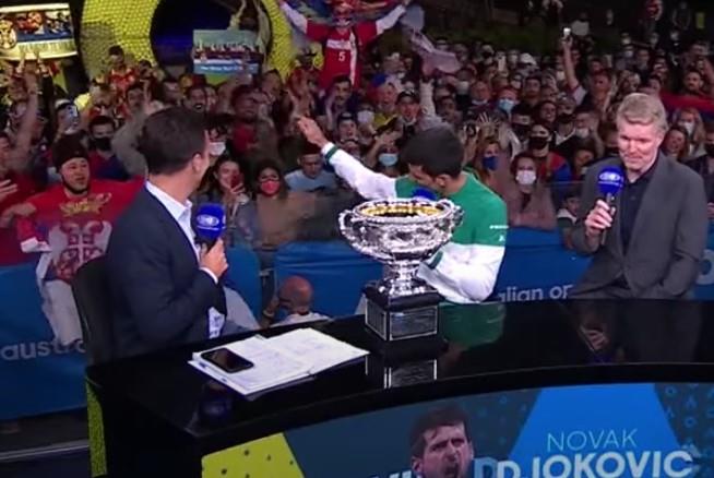 Najbolji teniser sveta Novak Đoković osvojio je svoju devetu titulu na Australijan openu, a posle meča je bio sjajno raspoložen. u intervjuima koje je kasnije dao kao šampion.