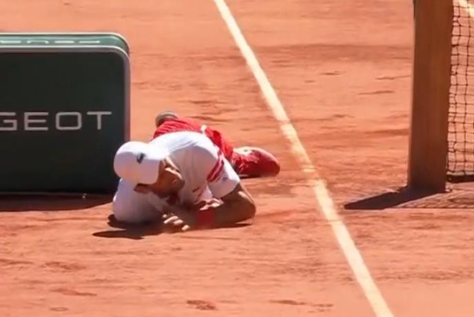 Najbolji teniser sveta Novak Đoković pao je tokom finala Rolan Garosa protiv Grka Stefanosa Cicipasa.
