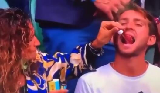 Kamere su uhvatile gospođu Klaudiju Bigo, Beretinijevu majku, kako svom drugom sinu pipetom stavlja u usta kapi tokom meča.