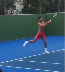 Na jednom od poslednjih bilo je i navijača koji su gledali kako Novak uvežbava svoje najmoćnije "oružje" - ritern.