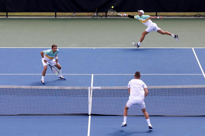 Oni su pobedili Kazahstanca Aleksandera Bublika i Francuza Adrijana Manarina sa 6:2; 6:1, posle 46 minuta igre.