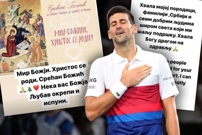 " Hvala mojoj porodici, familiji, Srbiji i svim dobrim ljudima širopm sveta koji mi šalju podršku. Hvala Bogu dragom na zdravlju ", napisao je Đoković na Instagramu.