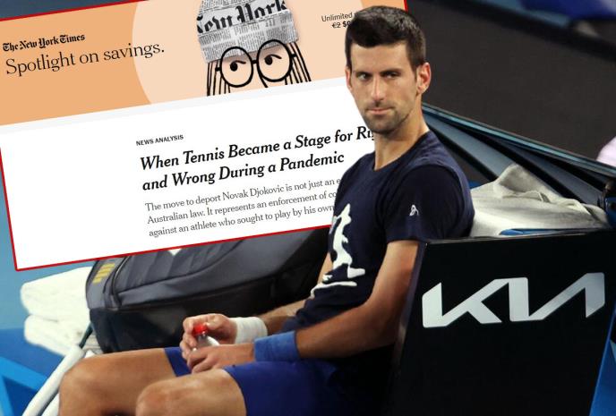 Saga oko statusa Novaka Đokovića dobila je novu stranicu nakon odluke australijskih vlasti da mu po drugi put oduzmu vizu, a novi napad na najboljeg tenisera sveta usledio je sa stranica čuvenog američkog portala "Njujork tajms".