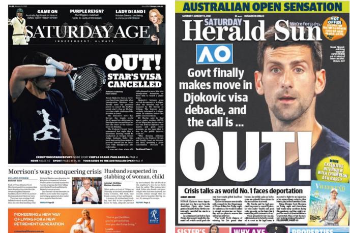 Više izdanja australijskih novina imale su isti naslov vezan za situaciju sa Novakom Đokovićem: