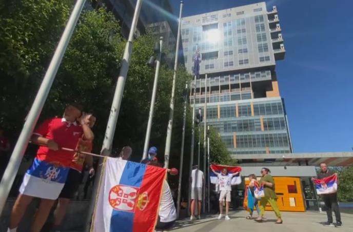 Za to vreme brojna srpska zajednica stiže kako bi mu pružila podršku.Među njima se nalazi i osoba u dresu Hrvatske.