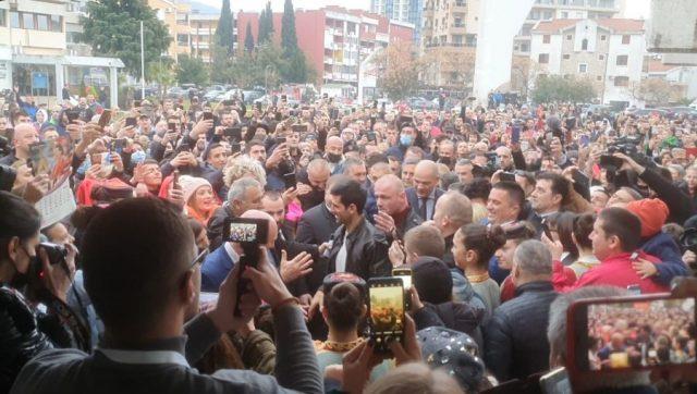Povodom dolaska prvog tenisera sveta ispred zgrade lokalne samouprave okupilo se više stotina građana.