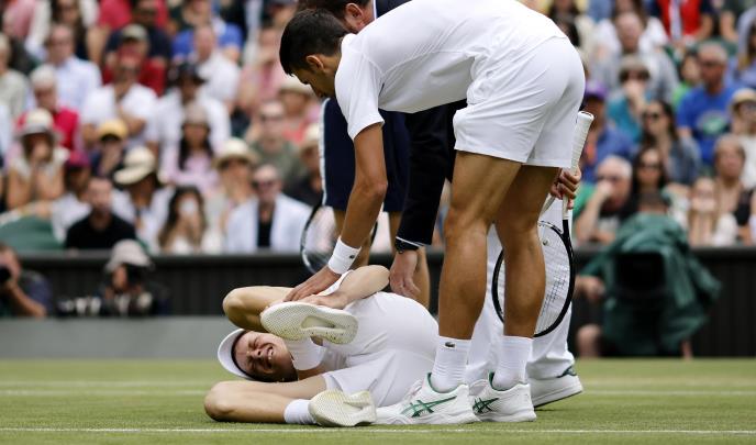 Mladi Italijan je nastavio da leži na zemlji, a zatim je Novak Đoković preskočio mrežu kako bi pomogao svom rivalu da ustane.