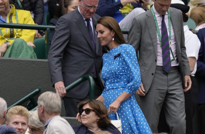 Potpuno očekivano, najviše pažnje javnosti privukla je Kejt Midlton koja je za meč četvrfinala Vimbldona odlučila da ponese plavu haljinu na tufne.