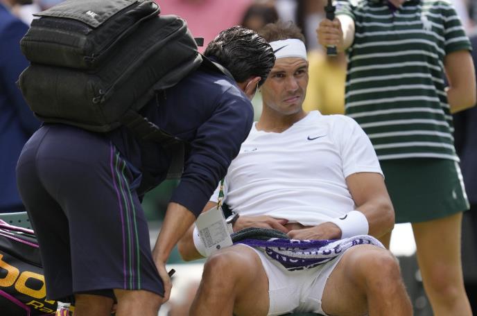 Nakon što je povređen i na štakama osvojio Rolan Garos zbog povrede stopala, Nadal je kao rekovalescent stigao i u London, da bismo na Ostrvu saznali da ima problem i sa trbušnim mišićima.