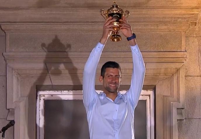 Građani su horski pevali himnu, dok je Đoković stajao sa peharom Vimbldona.