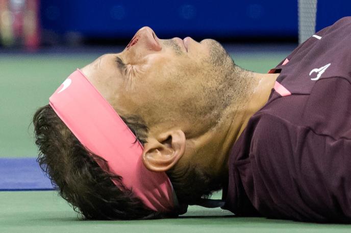 Meč je obeležila jedna bizarna situacija, kada je Nadal samog sebe nokautirao na terenu.