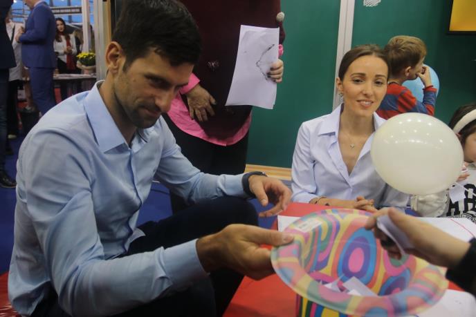 Novak je zajedno sa suprugom Jelenom popričao sa mališanima, crtao, igrao se...