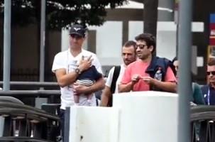 Španac je usnimljien kako šeta ulicama sa bebom u naručju.