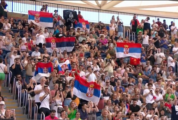 Srpski as ima sjajnu podršku srpskih navijača na ovom meču. Na tribinama stadiona u Adelejdu vijore se srpske zastave, a svaki poen Đokovića nagrađen je gromoglasnim aplauzom i ovacijama.
