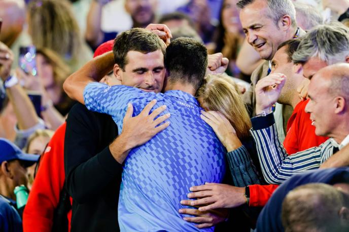 Novak je tada slavio titulu svojim timom, a onda je zagrlio brata Marka i majku Dijanu, kada se u potpunosti slomio i počeo da plaće.