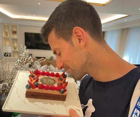 Novak je na Instagramu objavio fotografiju gde "pozira" sa specijalnom tortom na kojoj je ispisan broj "378", uz poruku: