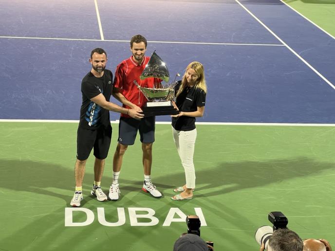 Ruski teniser Danil Medvedev osvojio je danas titulu na turniru u Dubaiju, pošto je u finalu pobedio sunarodnika Andreja Rubljova sa ubedljivih 6:2, 6:2.