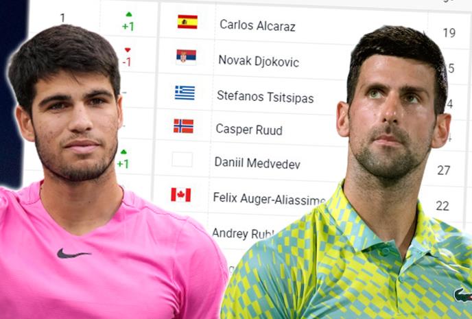 Alkaraz je osvajanjem novih 1000 poena pretekao Novaka Đokovića i vog ponedeljka je na prvom mestu sa 7.420 bodova.