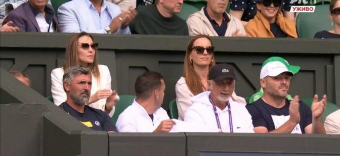 Đokovića su iz lože bodrili Goran Ivanišević, Čarli Gomez Erera, Marko Paniki, Miljan Amanović i Jelena Đoković, deca i jedna misteriozna žena.