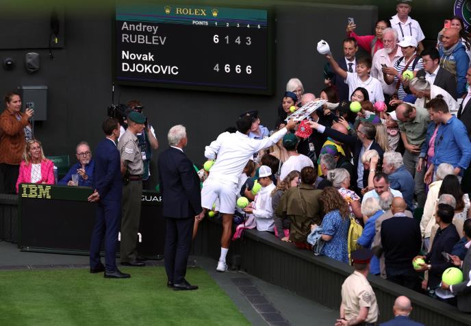 "Ne mogu sada da ti dam reket, sačekajte me momenat, mogu da vam dam nešto drugo", rekao je Đoković dok je potpisivao brojne suvenire gledaocima, a onda je otišao do torbe sa svojom opremom.