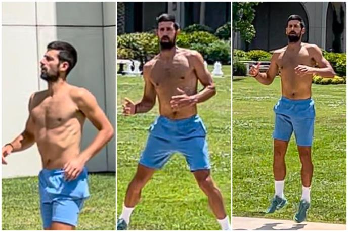 Novak je odlučio da odradio trening na šetačkoj stazi ispred hotela. Skinuo je majicu i počeo sa radom.