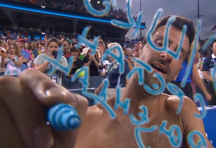 Trijumf na mastersu u Sintinatiju pobedom nad Karlosom Alkarazom, Novak Đoković je začinio tradicionalno ispisujući poruku na kameri.