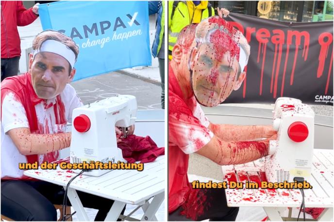 - Lažni Rodžer Federer je osetio svoje crveno čudo: Simbol loših plata koje plaća "On" u Vijetnamu. Prema "On-u", radnici zarađuju 260 franaka mesečno, a u sve su uključeni ekstremni pritisak da se dobro radi i gomila prekovremenih sati. Ipak, prema "Azijskom savezu za minimalne plate" poštena zarada bi iznosila 450 franaka mesečno - saopštenje je ove organizacije uz molbu građanima da potpišu peticiju protiv kompanije.