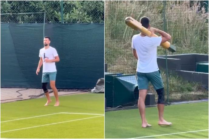 ĐOKOVIĆ PRESTIGAO ALKARAZA, PA PRAVIO ŠOU NA TRENINGU! Bos trenirao po travi, a zbog ovog poteza se svi pitaju ŠTA ON TO RADI?!
