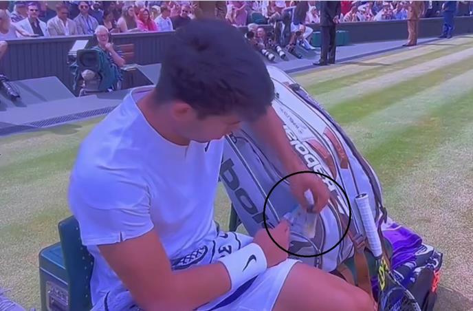 Kamera je snimila Alkaraza kako iz torbe vadi "tajni napitak" i društvene mreže počele su da "gore" jer niko ne zna šta se u bočici nalazilo.