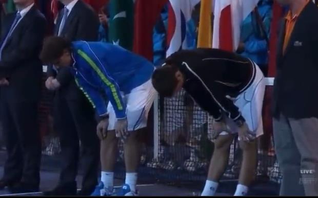 Nadal je posle četiri iscrpljujuća seta, u petom imao prednost 4:2, ali je Novak uspeo da se vrati u život, iako je delovao pptpuno "isceđeno". Nakon poslednjeg pena na meču, Novak se srdačno pozdravio sa Nadalom i u naletu emocija pocepao majicu.