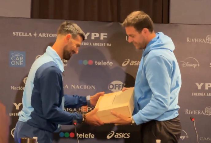 Nekadašnji grend slem šampion Del Potro pripremio je impresivan poklon svom velikom prijatelju - Novaku je uručio drvenu kutiju čiji je sadržaj bio nepoznat javnosti sve dok dvojica tenisera nisu otkrili šta je u njoj. Novak Đoković i Huan Martin del Potro zajedničkim snagama otvorili su poklon, a onda je Srbin čitavom svetu pokazao tri flaše vina koje je dobio.