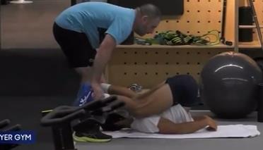 Bio je u ležećem položaju i u jednom trenutku je noge prebacio uvis, a onda spustio do glave. U svemu tome pomagao mu je fizioterapeut Miljan Amanović. Nastavio je istezanje po protokolu, u jednom trenutku snimka pojavio se i Miomir Kecmanović sa trenerom Viktorom Troickim, pa je to bilo pravo malo okupljanje Srba.