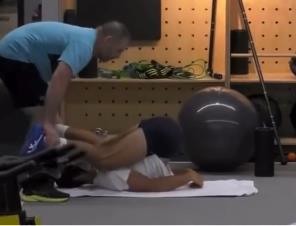 Na njemu se vidi kako Novak trenira, odnosno kako se isteže pre ili posle treninga.